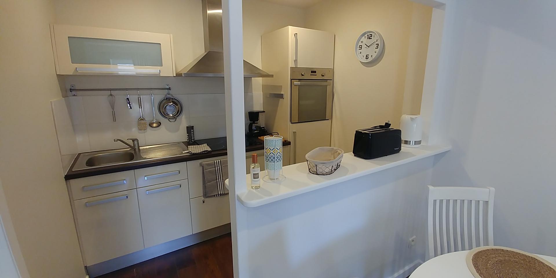 - Une cuisine équipée avec un four classique, un four micro-onde, une bouilloire, une cafetière, un frigidaire, des ustensiles de cuisine et un assortiment de vaisselle complet