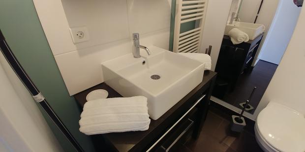 - Une grande chambre avec un lit de 160 cm et un lit de 90 cm